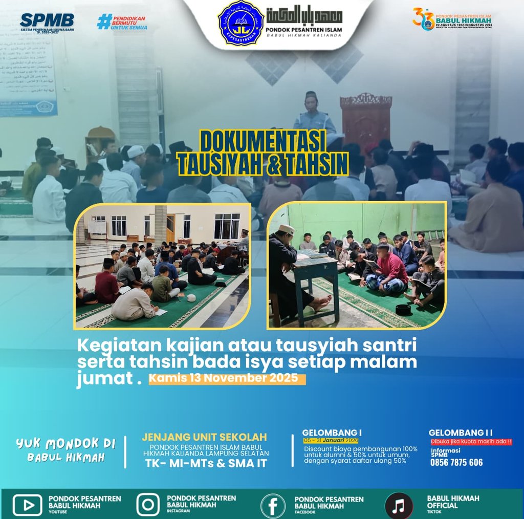 Dokumentasi Tausiyah Santri Putra Babul Hikmah 🌸 Semangat para santri Pondok Pesantren Islam Babul Hikmah dalam kegiatan tausiyah rutin dilaksanakan setiap Kamis ba'da isya. #BabulHikmah #PanahanSantriPutra #EkstrakurikulerBermanfaat #SantriBerprestasi